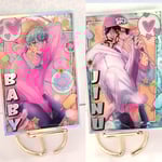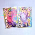 Beautiful, holographic bordered shikishi art boards with a holographic background and col foil effect layered on top! Both gold foil for the demon marks and effects overlay, and holographic silver for the 'text'.