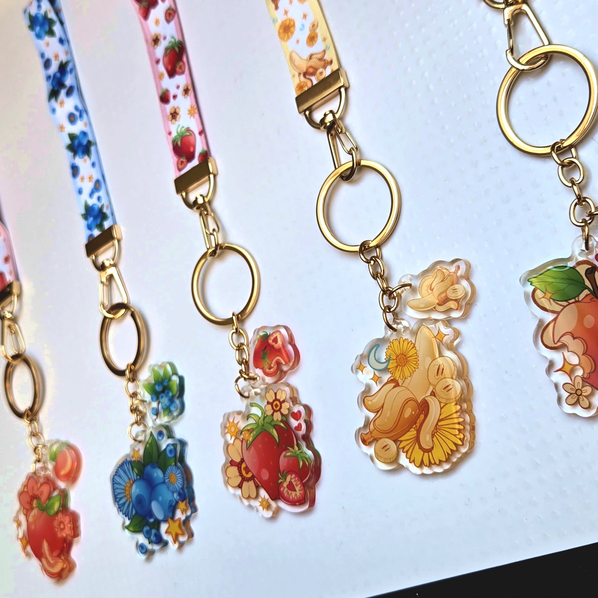 【 LANYARDS 】Fruity and Berry Key Ring Keychain (13cm. Lanyard, 2" + 1" Epoxy Front)